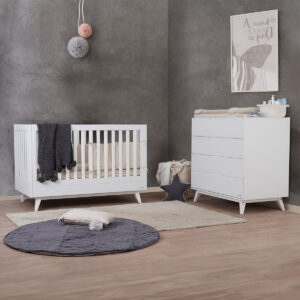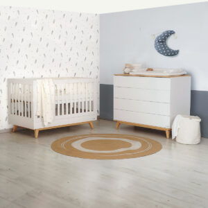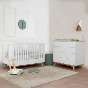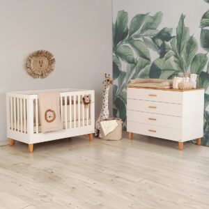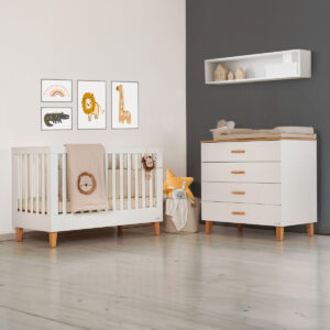 חדר ראנצ׳ וואלי של המותג דייניז, מעוצב בסגנון מודרני עכשווי, בקו ישר ונקי. החדר בגוון לבן ונקי בשילוב קונטרסטי חם של עץ מוסיף לו עניין טאצ’ ייחודי החדר כולל: מיטת תינוק דגם וואלי שידה דגם ראנצ׳ שידת ראנצ׳ – לשידת ראנצ’ ארבע מגירות ולכל מגירת ידית מעץ. למגירה העליונה חלוקה פנימית, המגירה מחולקת לשלושה חלקים וע”י כך מציעה ניצול מקסימלי, שימוש אופטימלי ונגישות מלאה לכל פריט (מומלץ לאחסן במגירה זו את הפריטים שבהם נעשה שימוש רב יותר כמו: חיתולים, מגבונים, מוצצים, בגדים וכו). למשטח העליון של השידה ציפוי מלמין בגוון עץ טבעי המוסיף חמימות ומלטף. לשידה רגלי עץ זוויתיות בגוון טבעי המגביהות את השידה ומעניקות לה מראה קליל ואוורירי. מיטת תינוק וואלי – מיטת וואלי מותאמת לשלבי ההתפתחות והצמיחה של התינוק, בסיס המיטה מתכוונן ל- 2 מצבי גובה: מצב עריסה ומצב מיטת תינוק. המיטה עומדת על רגליים זוויתיות העשויות מעץ מלא מגביהות אותה מהרצפה ונותנות לה מראה קליל יותר. מחירון-הובלות-דוורון