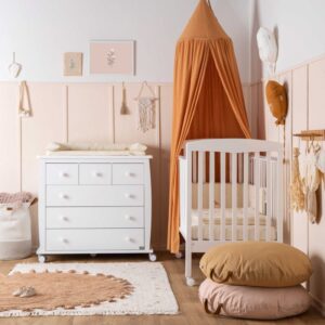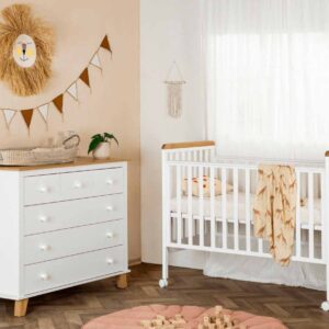 חדר דוני – מולי של המותג דייניז, בגוונים לבנים, נקיים וקלאסיים מקנה לחדר מראה עדין והרמוני ומשרה אווירה נעימה. החדר כולל: מיטת תינוק מולי בצבע לבן שידה דגם דוני שידת דוני – השידה משמשת לאחסון בגדיו הקטנים וחפציו החשובים של התינוק. לשידת דוני ארבע מגירות המאפשרות אחסון נוח, סדר וארגון. למגירה העליונה חלוקה פנימית, המגירה מחולקת לשניים ומציעה פתרון מעולה המקנה ניצול מקסימלי ונגישות מלאה לכל פריט לצורך שימוש אופטימלי (מומלץ לאחסן במגירה זו את הפריטים שבהם נעשה שימוש רב יותר). השידה עומדת על רגליים זוויתיות המרימות אותה מהרצפה ונותנות לה מראה קליל ואוורירי. מיטת תינוק מולי – מיטת מולי מותאמת לשלבי ההתפתחות והצמיחה של התינוק, בסיס המיטה מתכוונן ל- 2 מצבי גובה: מצב עריסה ומצב מיטת תינוק. למיטה רגליים בצבע לבן העומדות בזווית מגביהות את המיטה ומעניקות לה מראה קליל ואוורירי. הגוונים הבהירים נעימים לעין, והיא ללא ספק תהפוך למרכז העיצובי של החדר. *המיטה לא מגיעה עם מזרן / מצעים. התמונה להמחשה בלבד. מחירון-הובלות-דוורון