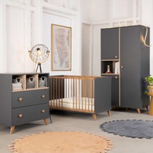 חדר לתינוק קוסמו גרפיט הוא שילוב של עיצוב אורבני עם קלאסיקה מעודנת שמצליחה להעניק רוגע, שלווה וחמימות. החדר לתינוק בצבע גרפיט עם עץ מלא ליצירת טוטאל דיזיין, ושילובים של גדלים שונים של ארונות ומיטות. בחירת שילוב הרהיטים דורש מחשבה ותכנון בהתאם לחלל.