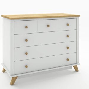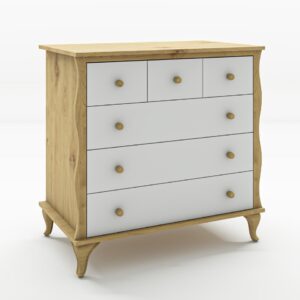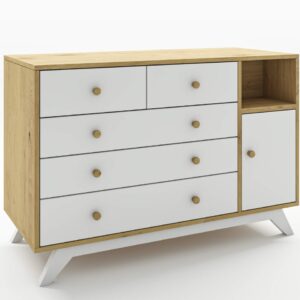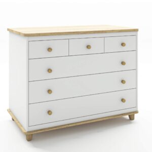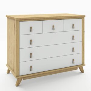 שידה לתינוק מדגם סידני חלוקת מגירות ייחודית שידה בעלת עיצוב עם עליון עץ אלון ניתן להזמין באפשרויות הבאות: שידה דגם סידני צבע לבן פלוס אלון צבע שמנת פלוס אלון
