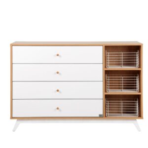 שידת הרמוני במראה בוהמיני מודרני, רחבה במיוחד. בעלת אחסון סגור ופתוח ומתאימה לשימוש לאורך שנים, ועיצובים עכשווים חמימים. שידה ברוחב 140 ס”מ, מסדרת המודרן, רחבה במיוחד , עוצבה מ MDF מלא איכותי וחזק – כולל פנים מגירות, עם גימור אולטרא גלוס. השידה מכילה מדפים פתוחים עם סלסלות נוספות לאחסון, המגירות מחולקות באופן בו הם מייצרים סדר וארגון פונקציונאלי למוצרי ובגדי התינוק, כך שיהיה לכם נוח לחתל ולהחליף בגדים על השידה. כדי לשמור על בטיחות התינוק שלכם שילבנו בשידה מוט פלדה מחושלת לחיזוק מבנה השידה לאורך זמן. כמו כן ניתן לקבע את השידה לקיר יש להקפיד לקנות את השידות אצל המשווקים המורשים תעודת-ארחיות_סגל שירות משלוחים – קבוצת סגל