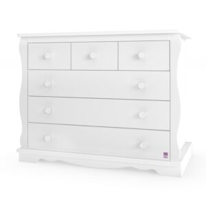 שידת מייסון מעוצבת בקווים רומנטים מעוגלים, המעניקה אווירה נעימה ורכה לחדר. צבע גוף: לבן צבע חזיתות עליונות: ניתן לבחור מגוון רחב של צבעים חומר: MDF מלא איכותי וחזק (כולל פנים המגירות) גימור: אולטרא גלוס יציבות מלאה: מוט פלדה מחושלת לחיזוק מבנה השידה. תאור : השידה מתאימה לאחסון מסודר של בגדי וחפצי התינוק לאורך זמן, הודות לגודל המגירות * יש להקפיד לרכוש את מוצרינו אצל המשווקים המורשים. תעודת-ארחיות_סגל שירות משלוחים – קבוצת סגל