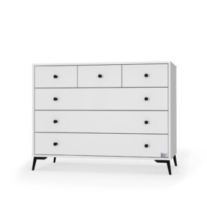 שידת גבע מעוצבת בקווים נקיים עם נגיעות עץ טבעי המעניקים לחדר מראה מודרני שמאפשר שילוב סגנונות רבים. שידה ברוחב 120 ס”מ, מסדרת הקלאסיק, עוצבה מ MDF מלא איכותי וחזק – כולל פנים מגירות, עם גימור אולטרא גלוס. חלוקת המגירות נועדה לייצר סדר וארגון פונקציונאלי למוצרי ובגדי התינוק, כך שיהיה לכם נוח לחתל ולהחליף בגדים על השידה. כדי לשמור על בטיחות התינוק שלכם שילבנו בשידה מוט פלדה מחושלת לחיזוק מבנה השידה לאורך זמן. כמו כן ניתן לקבע את השידה לקיר יש להקפיד לקנות את השידות אצל המשווקים המורשים