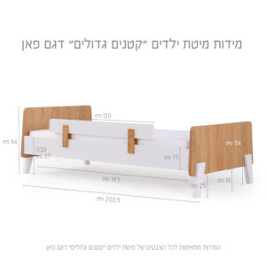 מידות :אורך: 136 ס”מ | גובה: מהתחתית עד המזרן: 25 ס”מ | מהתחתית עד למעקה: 42.5 ס”מ | גובה כללי: 60 ס”מ |רוחב: 78 ס”מ | גובה מעקה: 20 ס”מ | רוחב מעקה: 63 ס”מ