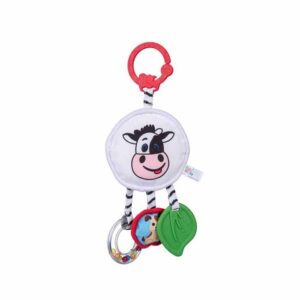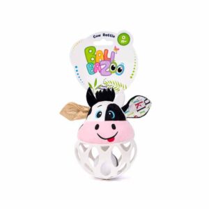 צעצוע של 3 ב -1! ראש פרה רך ומעטר מעטר כדור רך ובתוכו רעשן. הכדור עשוי מחומר גמיש ובעל חורים נוחים המקלים על אחיזת הצעצוע בידיים קטנות. הפרה עשויה מחומרים בעלי מרקמים שונים, ואוזניה מרשרשות בצורה מצחיקה.