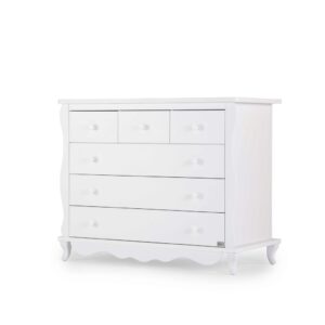 שידת קרן, במראה רומנטי בעלת פרטי חריטה יחודיים למראה קלאסי מעודכן. השידה בגימור צבע בתנור ומגיעה עם ידיות בצבע זהב. צבע גוף: לבן צבע חזיתות: לבן חומר: MDF מלא איכותי וחזק (כולל פנים המגירות) גימור: צבע בתנור בשילוב חריטות ייחודיות בפלטת השידה ועל חזית המגירות + ידיות קלאסיות בגימור זהב מט ורגליים מעוצבות יציבות מלאה: מוט פלדה מחושלת לחיזוק מבנה השידה לטווח ארוך. תאור : השידה מתאימה לאחסון מסודר של בגדי וחפצי התינוק לאורך זמן, הודות לגודל המגירות * יש להקפיד לרכוש את מוצרינו אצל המשווקים המורשים.