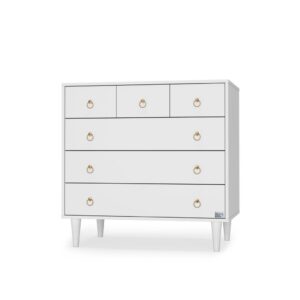 שידת תלם מעוצבת בקווים מודרנים נקיים עם נגיעות עץ שמעניקות לה חמימות שיכולה להשתלב בסגנונות שונים. שידה ברוחב 100 ס”מ, מסדרת הקלאסיק, עוצבה מ MDF מלא איכותי וחזק – כולל פנים מגירות, עם גימור אולטרא גלוס. חלוקת המגירות נועדה לייצר סדר וארגון פונקציונאלי למוצרי ובגדי התינוק, כך שיהיה לכם נוח לחתל ולהחליף בגדים על השידה. כדי לשמור על בטיחות התינוק שלכם הקפדנו על חומרים איכותים ועמידים לאורך שנים. יש להקפיד לקנות את השידות אצל המשווקים המורשים תעודת-ארחיות_סגל שירות משלוחים – קבוצת סגל